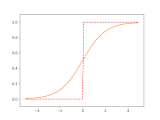 Fig. 3-8 Step Function (dashed line) and Sigmoid Function